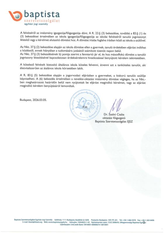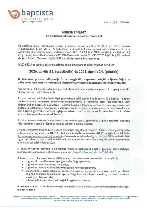 Gesztenyéskert Baptista Óvoda - Beiratkozás